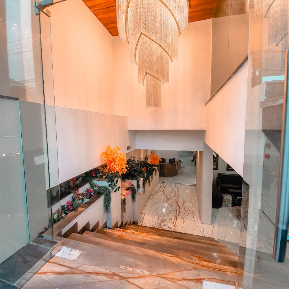 Our property also consists of a fine dining restaurant named DIVINE DINE which serves vegetarian food specially prepared by our expert Chef’s. Also to mention we have a Banquet named REGALIA which caters to 80 to 100 guests with an elaborate menu to offer. And finally also introducing our Roof-Top lounge and bar known as the HIGH LOUNGE catering to guests who need to enjoy the open air dining experience with a spectacular aerial view.